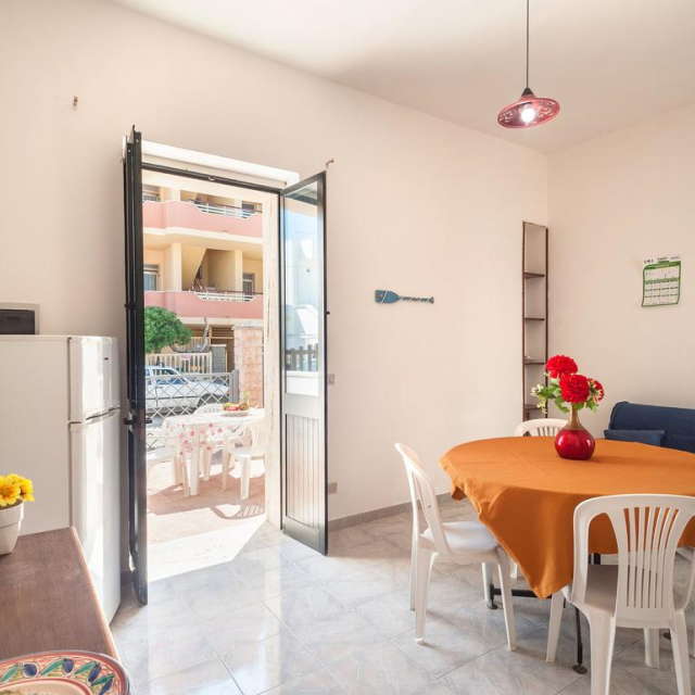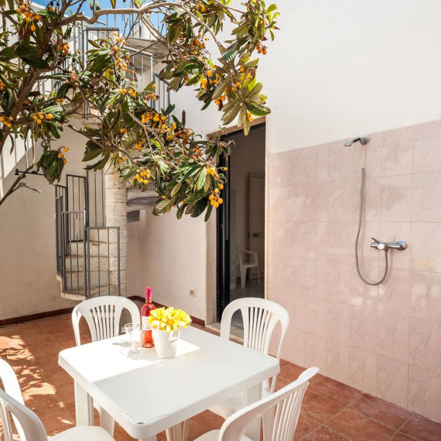 -entrata con ampia veranda con tavolo e sedie comoda per consumare liberamente pasti a l’esterno più un doccino molto comodo all'arrivo dalla spiaggia.