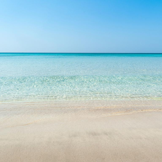 (10 metri dalla spiaggia di sabbia finissima e mare cristallino) e a 2 passi dal centro.