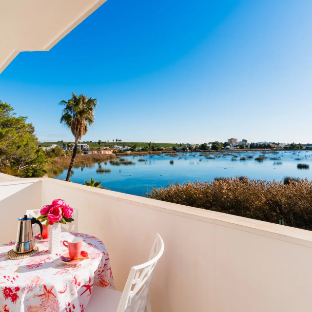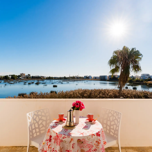 Si trova al primo piano di una villa con vista sulla laguna.