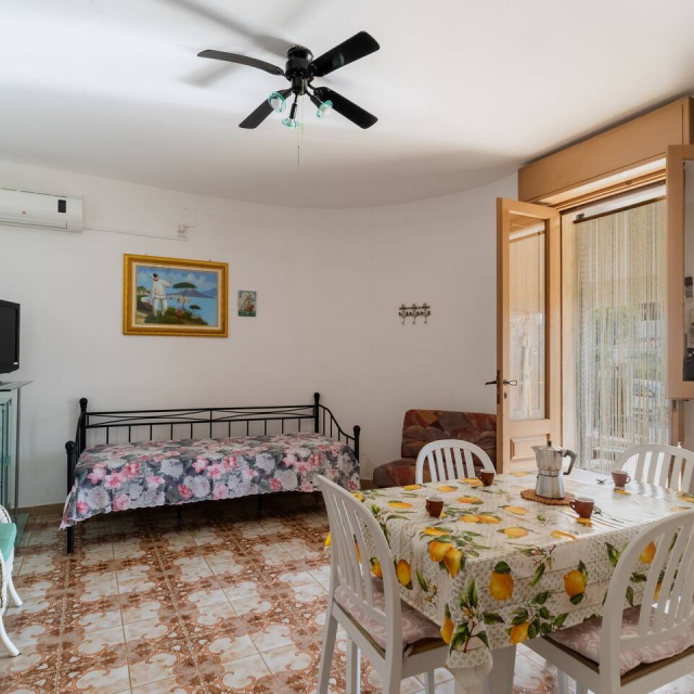 - un ampia sala da pranzo climatizzata con un letto una piazza e mezza e poltrona letto