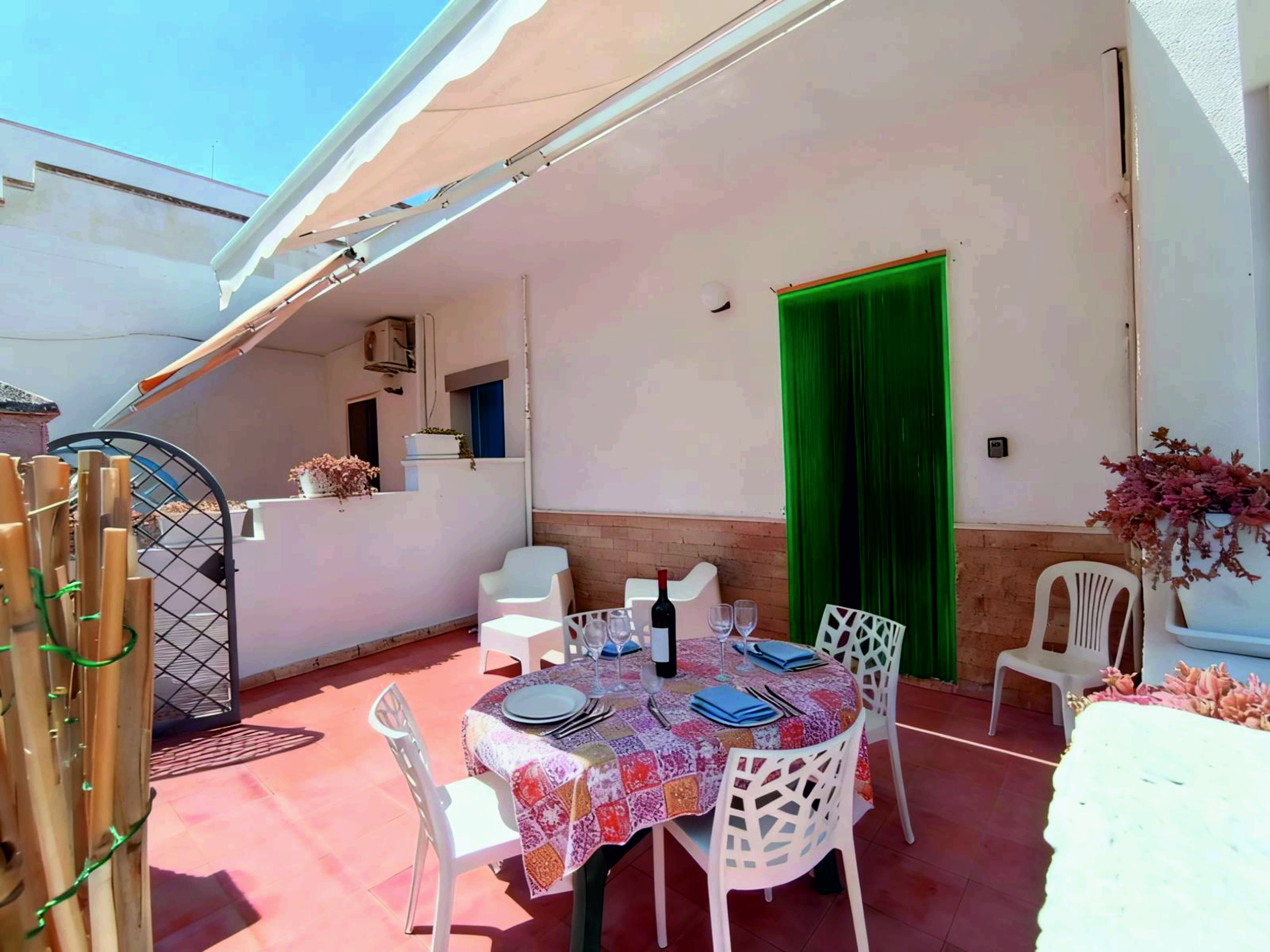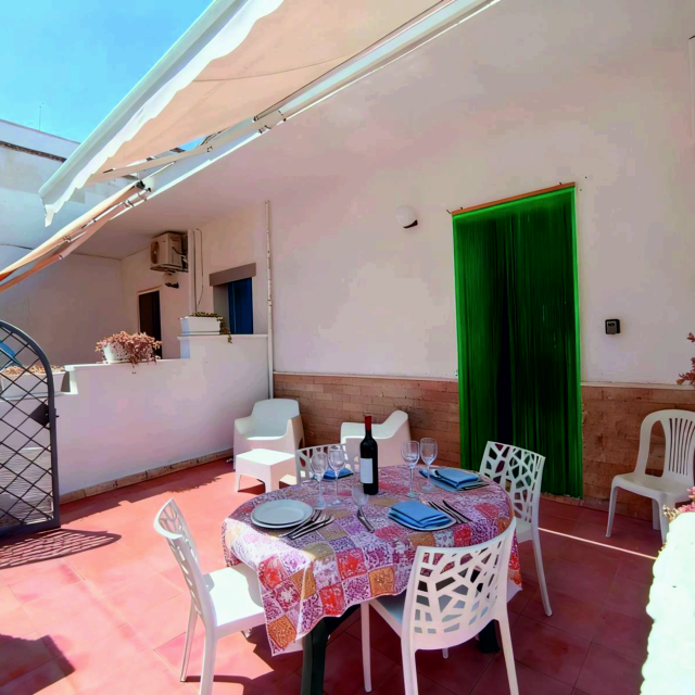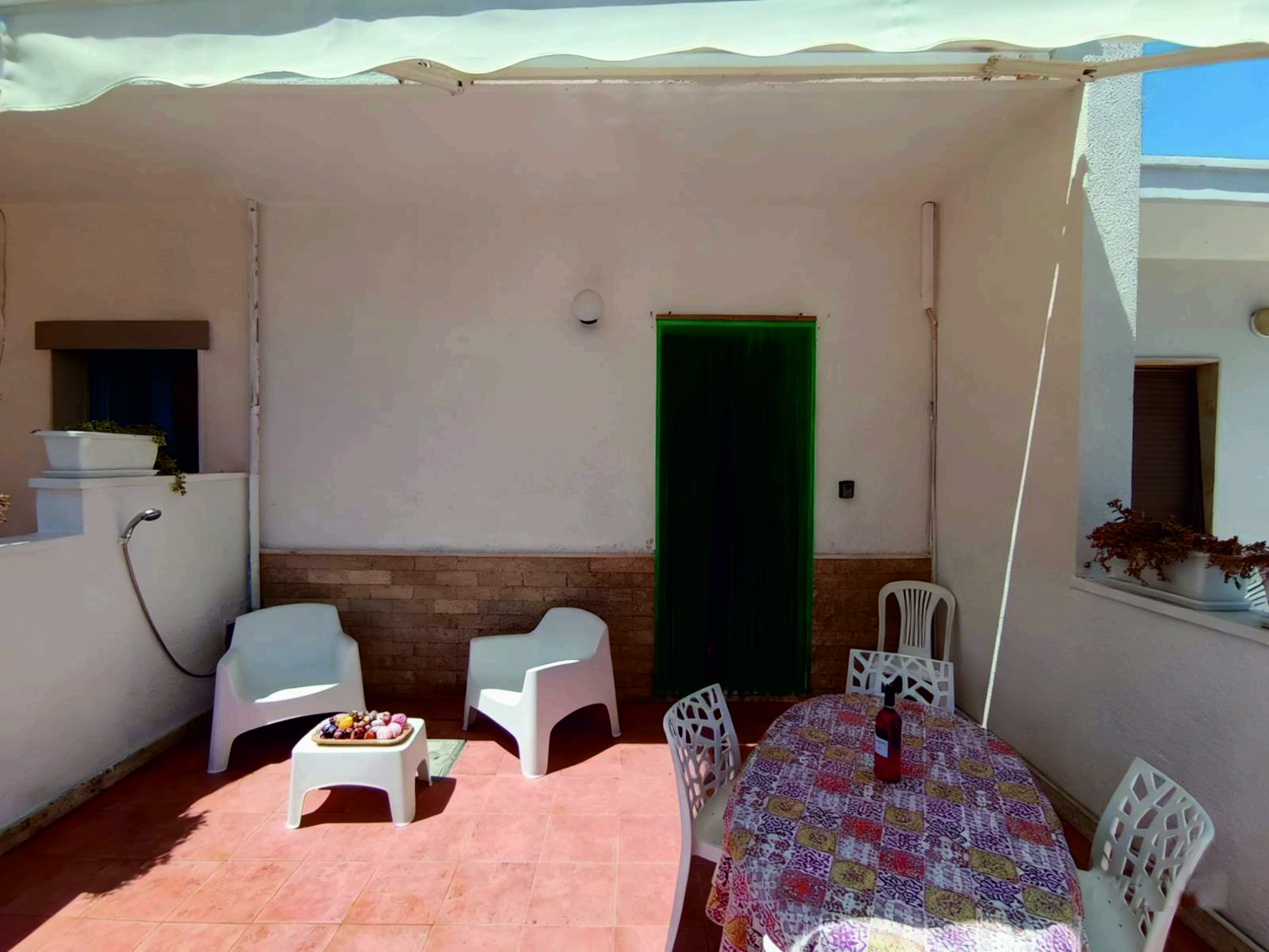 -entrata con ampia veranda con tavolo e sedie comoda per consumare liberamente pasti a l’esterno più un doccino molto comodo all'arrivo dalla spiaggia.