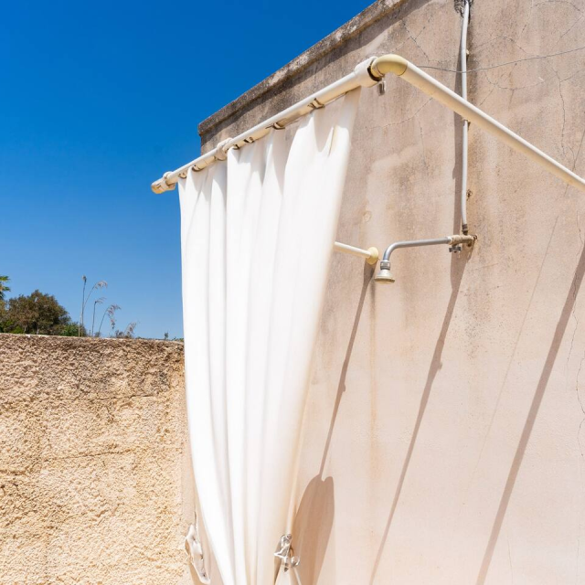 in giardino sono presenti tavolo e sedie per consumare pasti all’aperto,una comodissima e piacevole doccia esterna con acqua calda