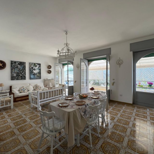 Porto Cesareo. Bellissimo e raffinato appartamento di 190 mq in villa bifamiliare con giardino indipendente, a 300 metri dal mare (tratto di scogliera e spiaggia cristallina) e dal centro.