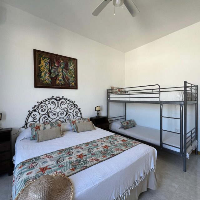 La zona notte è dotata di due condizionatori, e tre ventilatori a soffitto.