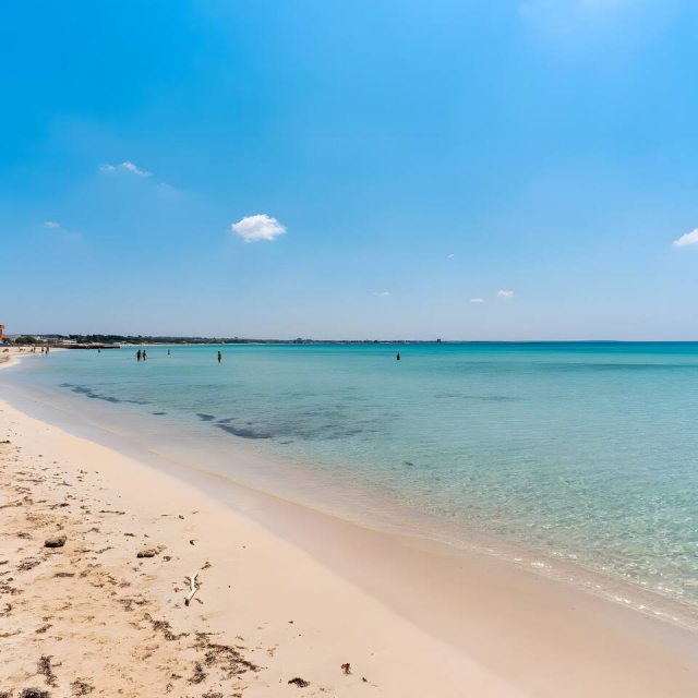 (200 metri dalla spiaggia di sabbia finissima e mare cristallino) e a 2 passi dal centro.