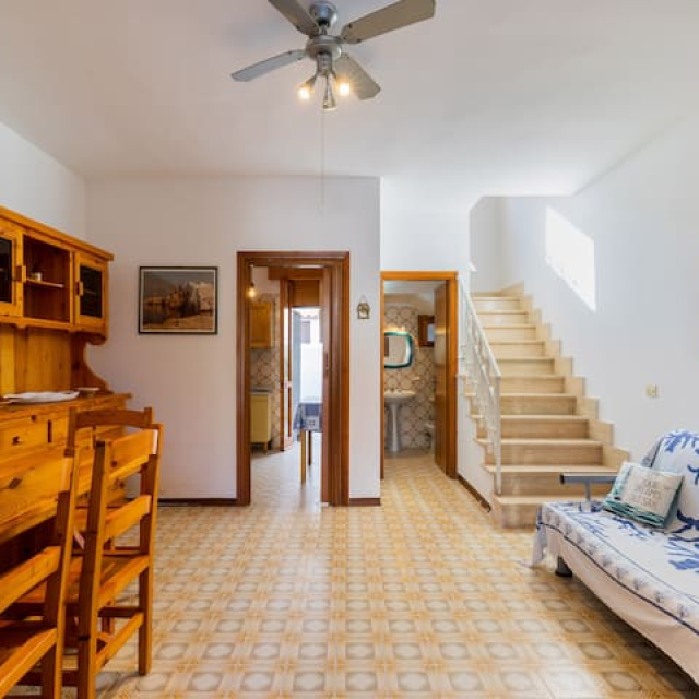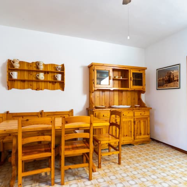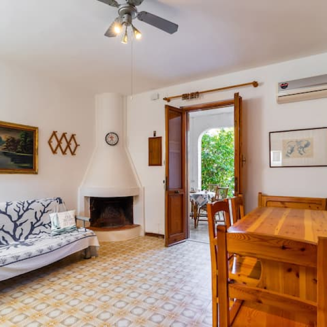 Ampia sala da pranzo climatizzata con divano letto doppio e bagno di servizio
