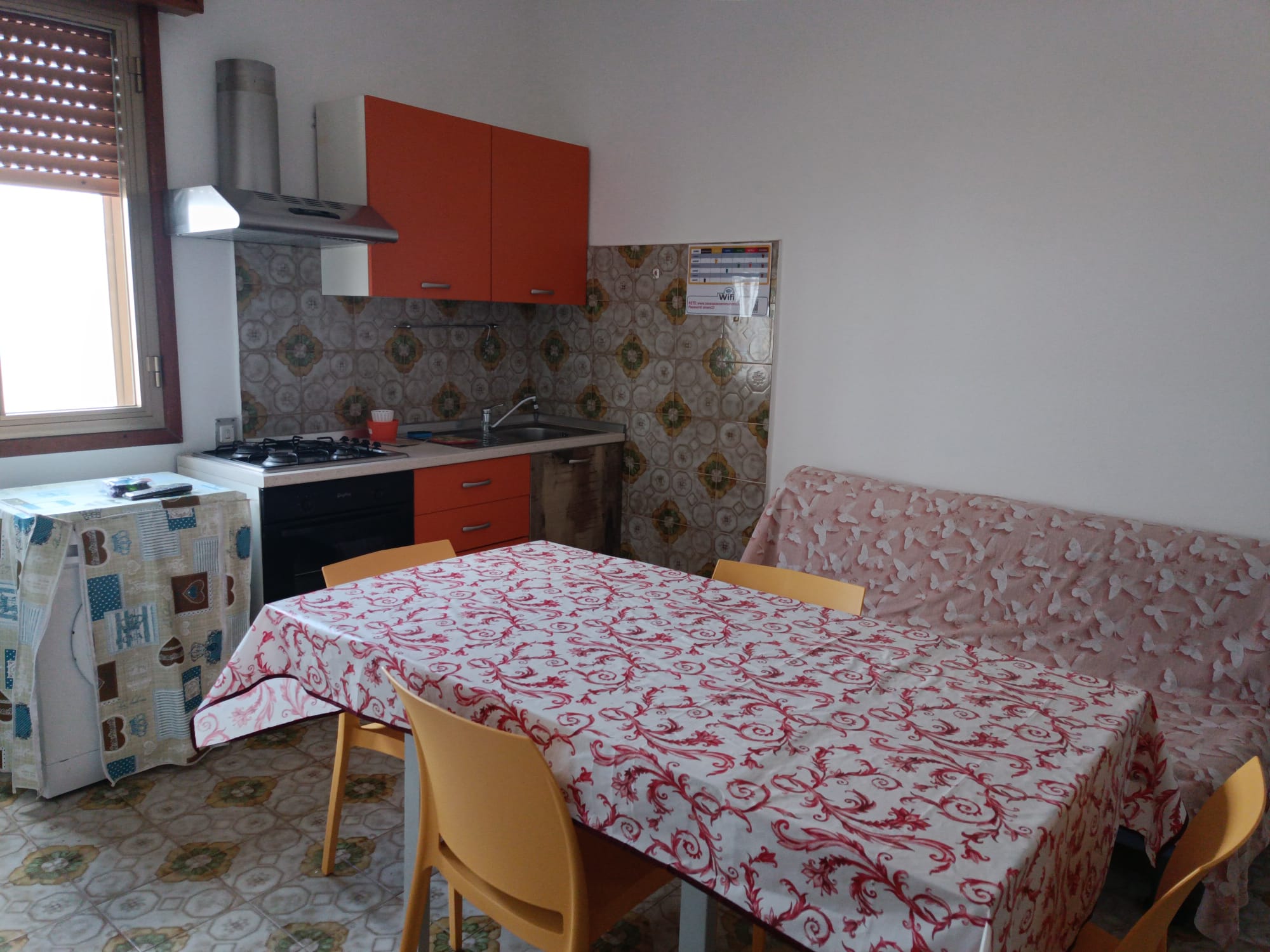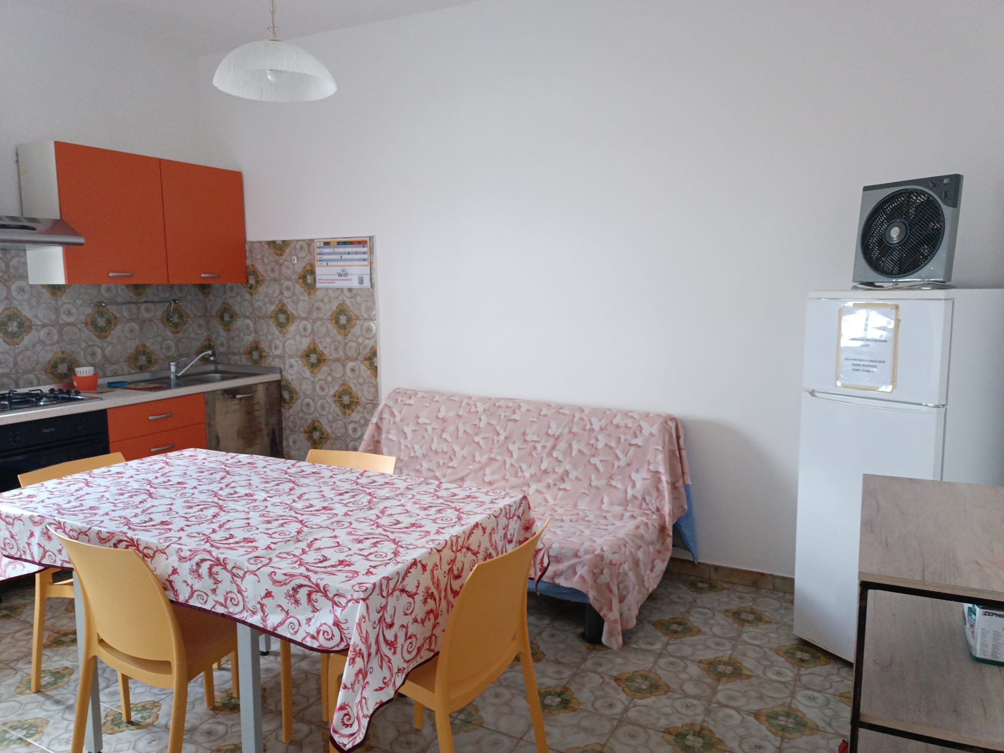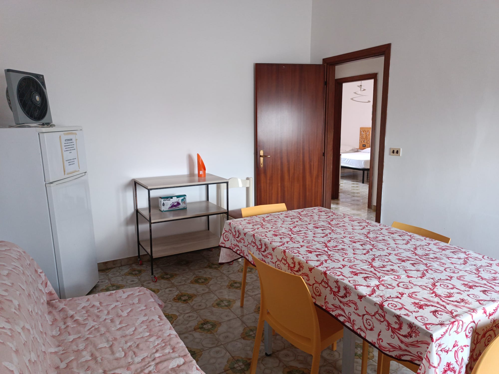 un divano letto matrimoniale in sala da pranzo