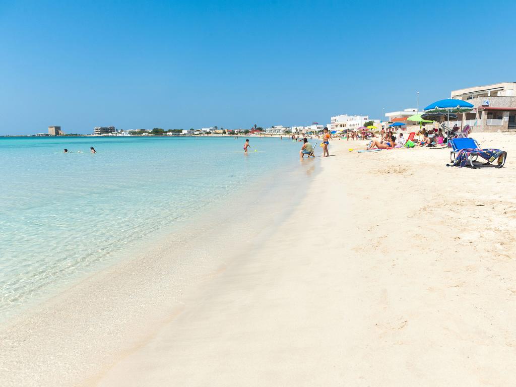 (10 metri dalla spiaggia di sabbia finissima e mare cristallino) e a 2 passi dal centro.