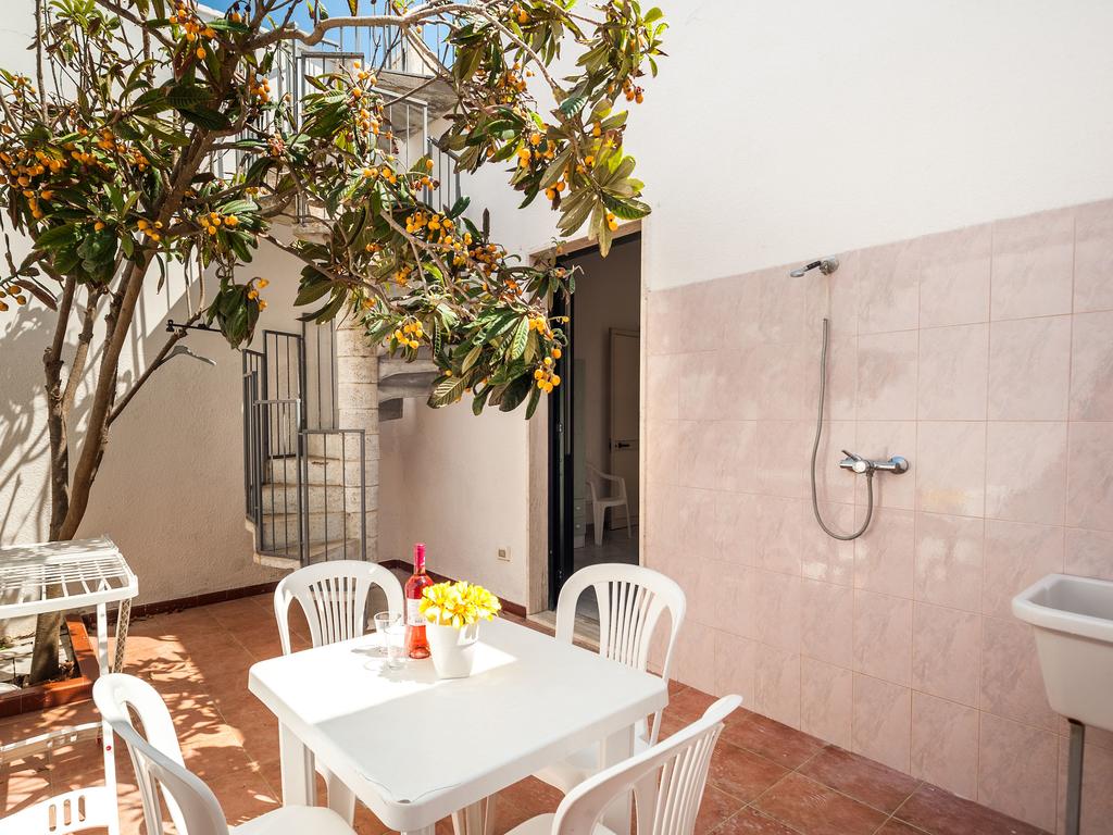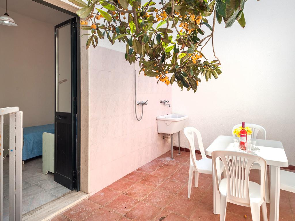 -entrata con ampia veranda con tavolo e sedie comoda per consumare liberamente pasti a l’esterno più un doccino molto comodo all'arrivo dalla spiaggia.