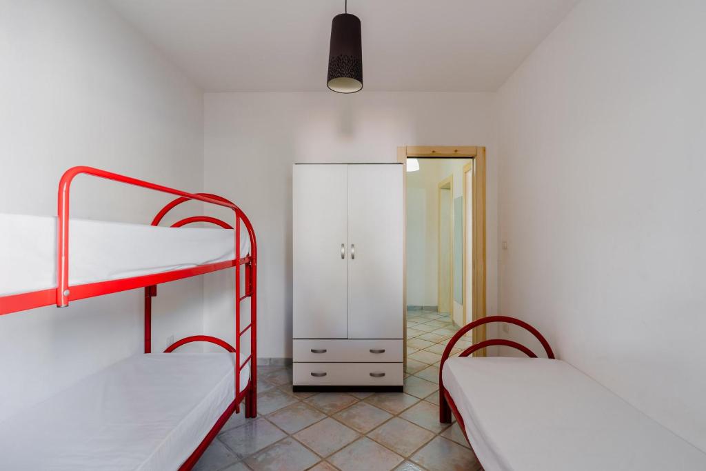 una camera con letto e letto a castello, no clima;