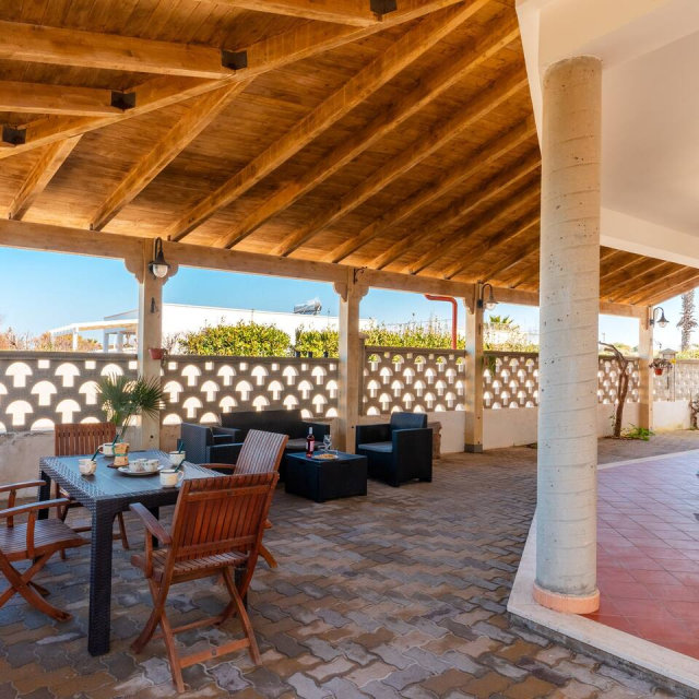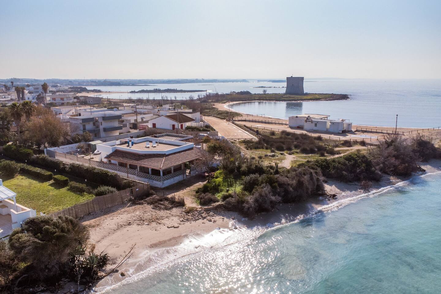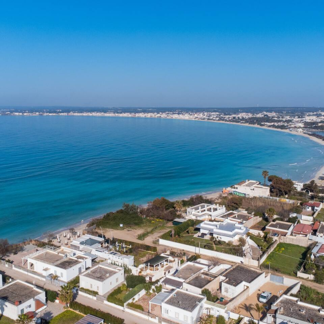 Villa Wanda, situata a Torre Lapillo, è una residenza di prestigio direttamente con accesso privato sul mare. Circondata da un ampio giardino, offre accesso privato alla spiaggia. Gli interni raffinati e le viste spettacolari creano un'atmosfera di lusso e relax. Ideale per chi cerca una vacanza esclusiva nella splendida cornice della costa salentina.